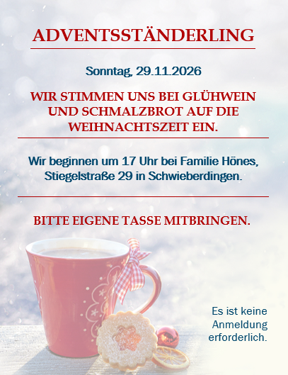 29. November 2026, 17:00 Uhr, Stiegelstraße 29 in Schwieberdingen
