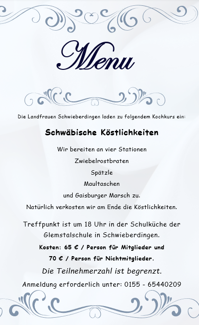 09. März 2026, 18:00 Uhr, Schulküche in der Glemstalschule in Schwieberdingen